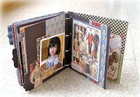 Can you see the knob on it? This is really neat, it's from 7gypsies. I definitely wanted to use the lady with the cherry pie for the cover at the first sight. This mini has quite a lot of pages. It took me time to decorate all of them. hehe. But, had fun as usual:)