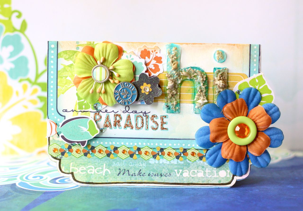 今日はBo Bunnyの新しいコレクション、【Barefoot & Bliss】で作った作品のご紹介です。とっても明るくて、楽しいコレクションになってます。エンベリもどんどん充実してきましたね(*^_^*) 正直Bo BunnyのDTになった頃はあまりBo Bunnyのこと知らなくて、私にはないスタイルばっかりだったので戸惑いがありましたが、今は好きでなりません!